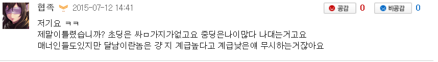 그렇다고해서욕이나찍찍뱉는입에걸X를문놈도철부지고 그전에 비하한놈도철부지같은데 그리고뭐??중삐리가나이가많아??초딩은대부분4가지가없어?? 어디서그런X논리를 그리고계급낮다고무시하는건걔잘못이고 근데그걸또차단안하고달려드는그쪽도잘못이고