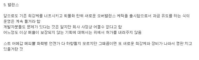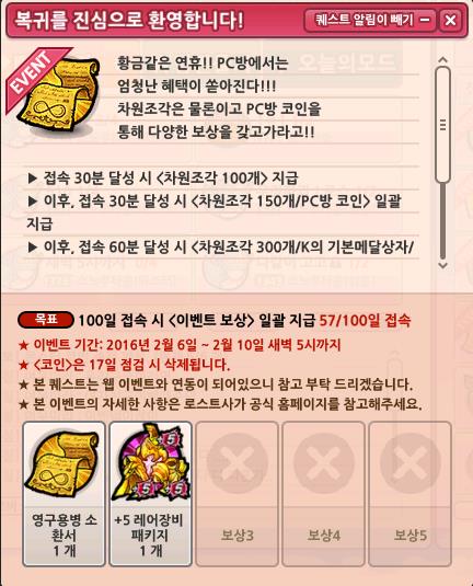 (지인에게 부탁해서 얻은 캡쳐본입니다.) 이 퀘스트는 몇달전 복귀유저들을 대상으로 하는 이벤트 퀘스트입니다. 이 퀘스트는 최초 접속시 각종 아이템을 주고 게임 접속이나 플레이시간 채우고 또 아이템을 주는데 캡쳐본에 나오는 퀘스트는 마지막에 발생하는 퀘스트로 100일을 접속하면 되는 이벤트퀘스트입니다. 그런데 퀘스트 설명을 자세히 보면 PC방코인이라든지 이벤트기간이 아주 이상하네요? 이 이벤의 기간은 아마도 1년인걸로 알고있습니다. (당시의 공지들을 전부 찾아봤지만 찾을 수 없었어서 첨부하지못했습니다.) 뭔가 이 퀘스트 내용... 어디서 봤다 싶었더니. 바로 이번에 진행하는 이벤트페이지 아래에 있는 부분인데요 이벤트기간이나 보상같은 것들이 전부 이 이벤트라고밖에 생각 할 수가 없습니다. 만약 이 이벤트퀘스트를 그대로 진행했다면 퀘스트가 꼬이는 그러한 버그들이 발생하게 될 수도 있는거 아닌가요? 만약 운영진분들께서 이 글을 보게된다면. 최대한 빠르게 조치를 취해주시고, 공지사항 또한 따로 띄워주셨으면 합니다. 적어도 공식적인 입장정도는 밝혀주세요. -------------------------------------------- http://lostsaga.nexon.com/community/view.asp?group=free&idx=5046793 (원본 글 링크) 위 내용은 얼마전에 "모시" 라는 유저가 작성했던 간담회 관련글의 일부 내용입니다. 밸런스? 솔직히 밸런스는 맞춰주면 당연히 우리는 좋습니다. 즐기는 사람들의 입장에서는 오히려 좋죠. 솔직히 말해서 저는 로스트사가의 밸런스를 좋아하지는 않습니다. 약캐들과 강캐들이 차이가 심하게 차이가 나기도하면서 과금으로 실력의 차이를 쉽게 커버가 가능한 그런것들... 하지만 어쩔 수 없이 오버밸런스 현상이 일어날 수 밖에 없는건 게임을 개발하고 운영하는 입장에선 하나의 직장으로 돈을 벌기 위해 어쩔 수 없다고 생각합니다. 아무리 밸런스가 안맞는다고 해도 할 사람들은 결국 하게되있습니다. 저는 로스트사가를 인생게임으로써 자리잡아버렸고 로사가 아무리 싫어도 이미 게임이라 하면 로사밖에 눈에 안들어옵니다. 그러니까 게임을 즐기는 사람들을 위해서라도 밸런스는 둘째치고 관리정도는 확실하게 해주셨으면합니다. 요약. 1. 아무리 이 게임이 밸붕이라고 해도 2. 이 게임 할 사람들은 할거니까 3. 그런 사람들을 위해서라도 좀 더 노력해주세요 + ※누군가를 비방하는 의도는 전혀 없습니다. |