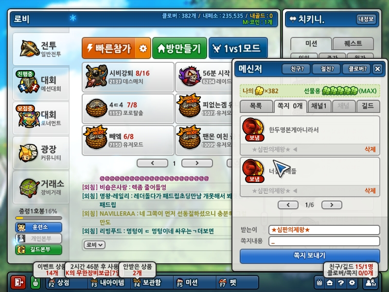 혼자 다한다; 렉권은 무슨 지컴이 후진건 생각도안하냐; 렉ㅈㄴ걸렸었네; 논리로따지니까 쫄리나 아무말도 안하고있네; 그냥 가만히있어; 좀; 너같은애들 상대하기 귀찮단말야; |