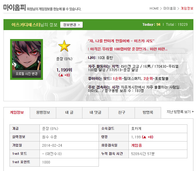 일대일 모드 랭킹