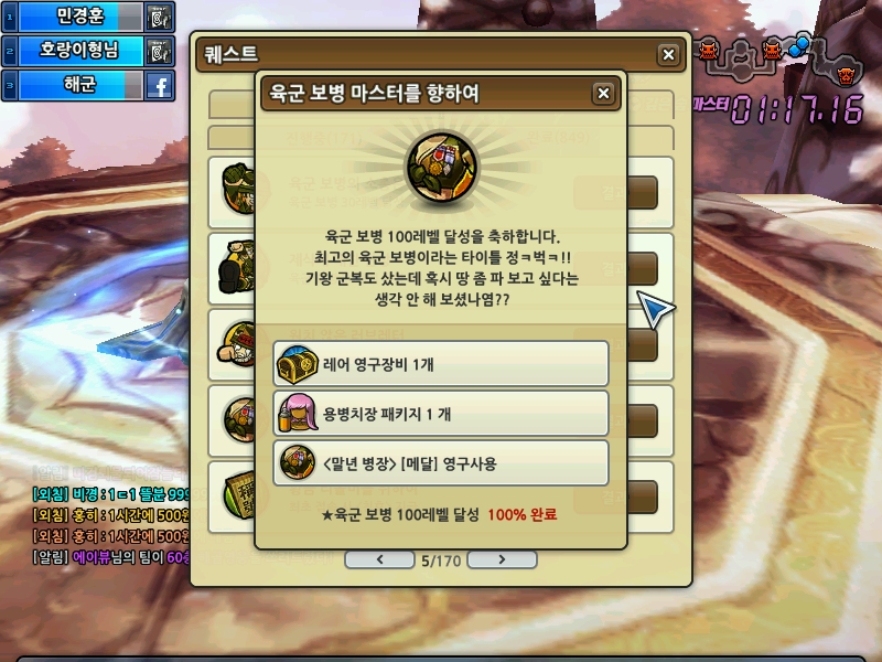 육군보병도 100렙이네요. 다음에는 웨건 100렙도 가볼까요